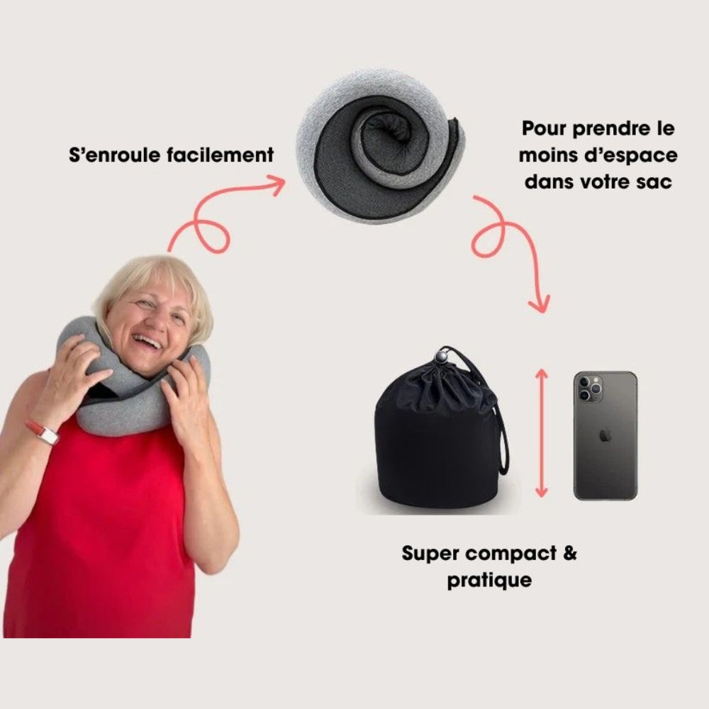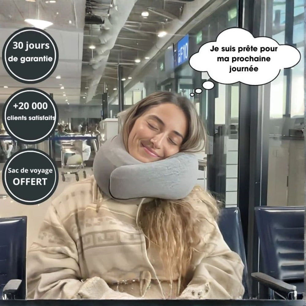 Découvrez le seul oreiller qui maintient vraiment votre tête. Design ergonomique breveté pour des voyages sans fatigue ni douleur.